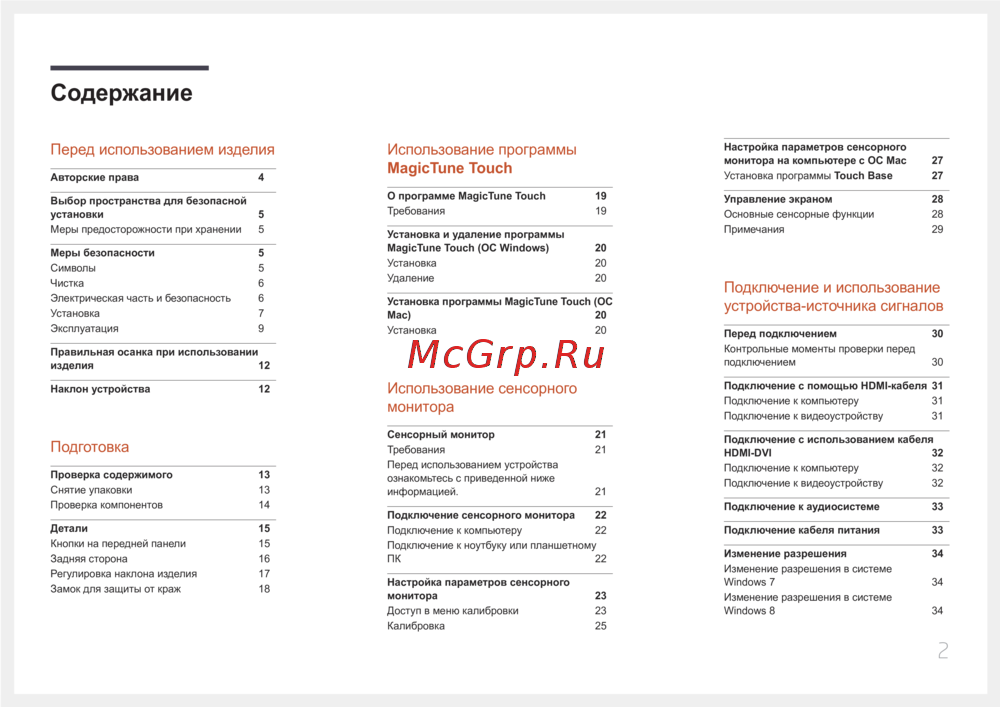 - Использование сенсорного монитора p.2