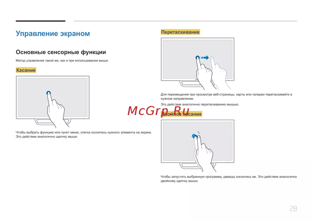 Samsung S24C770T — основные сенсорные функции управления экраном [28/61]