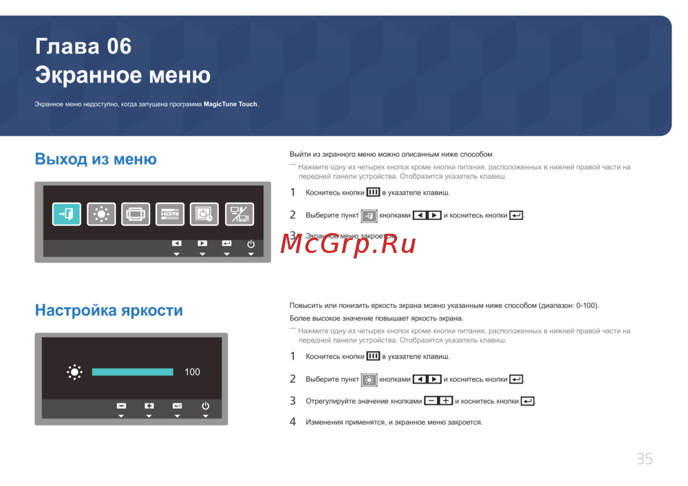 Samsung S24C770T — инструкция по выходу из экранного меню и настройке яркости [35/61]