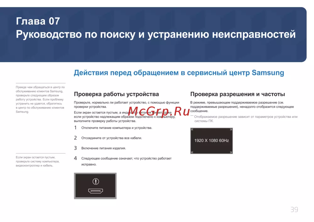 - Действия перед обращением в сервисный центр samsung p.39