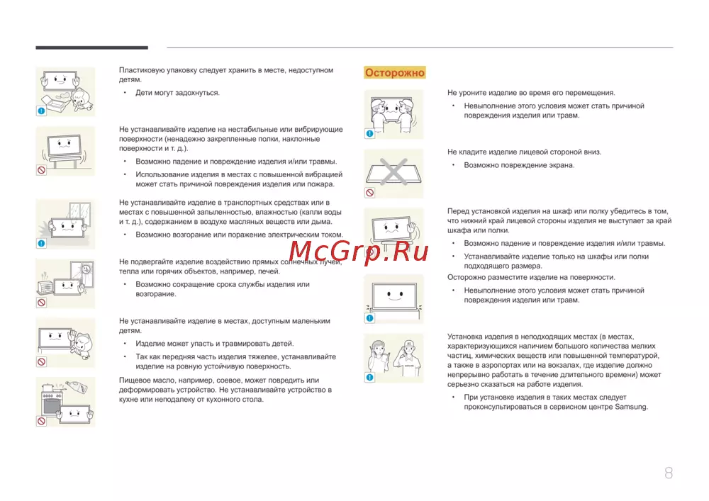 Samsung S24C770T — правила безопасной установки и хранения устройства [8/61]