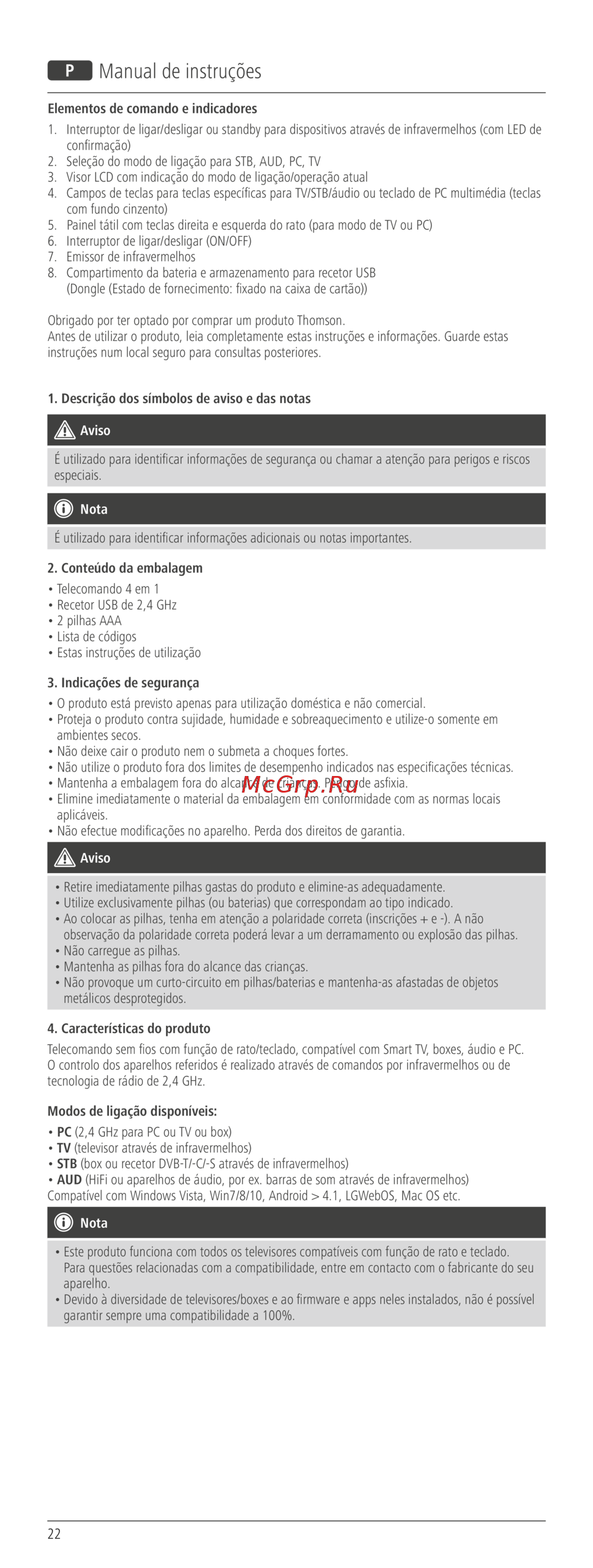 Thomson ROC3506 — manual de Instruções para Controle Remoto Multifuncional [24/60]