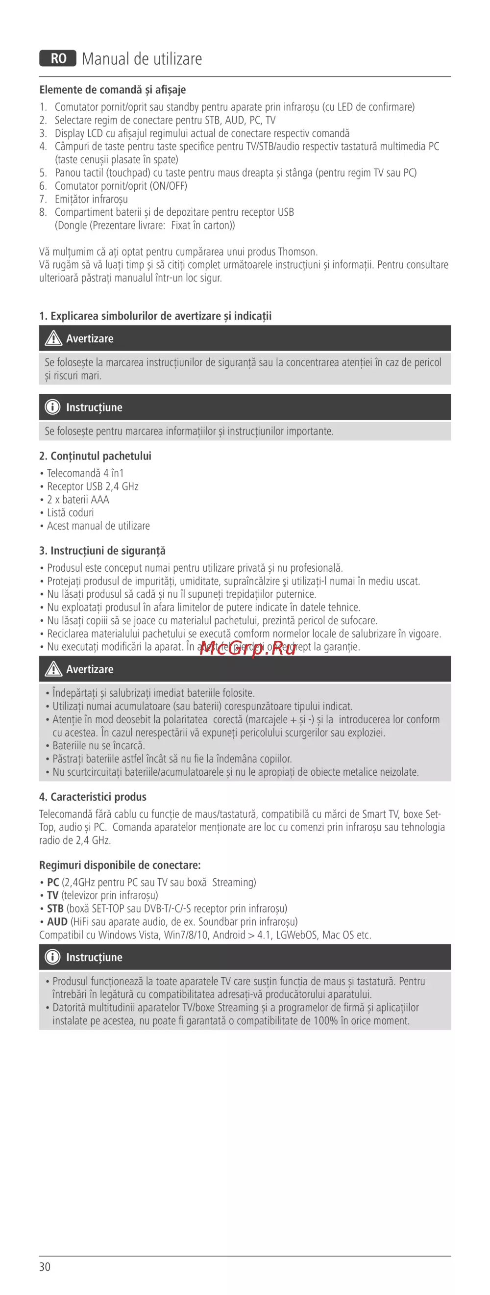 • Produsul funcționează la toate aparatele TV caresusțin funcția de maus și tastatură. Pentru