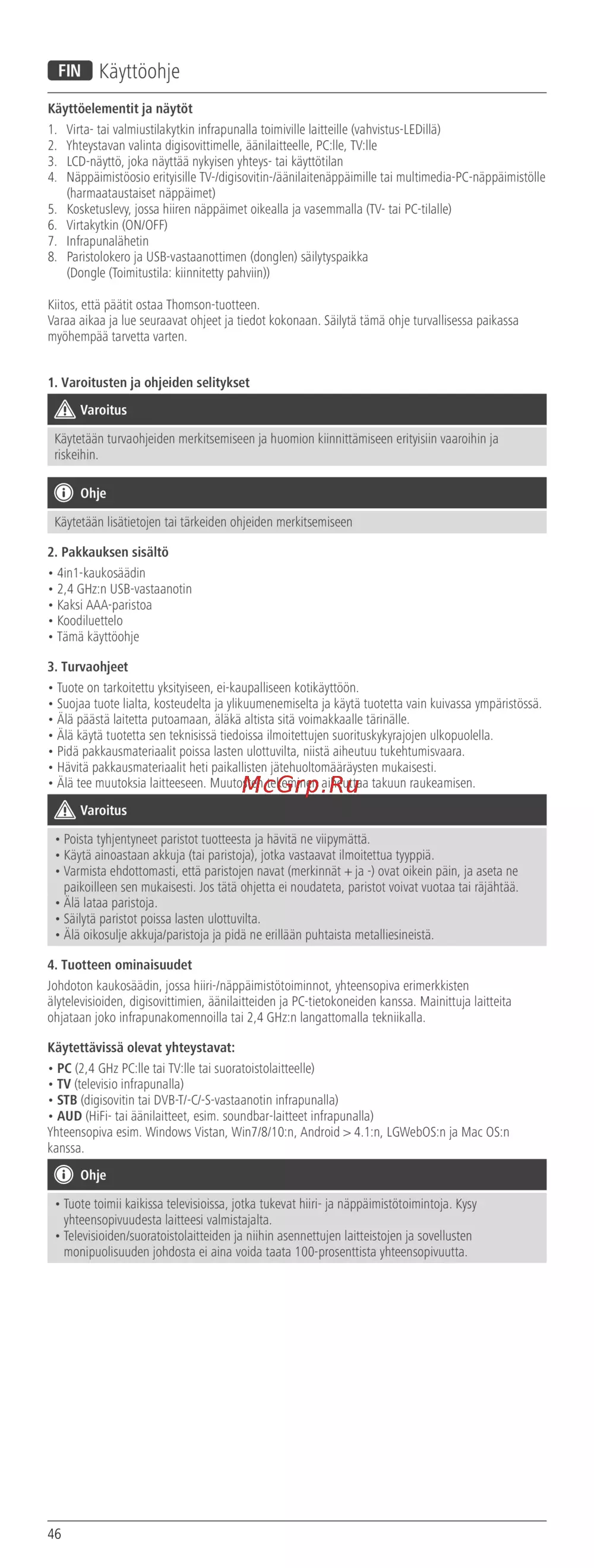 • Tuote toimii kaikissa televisioissa, jotka tukevat hiiri- ja näppäimistötoimintoja. Kysy