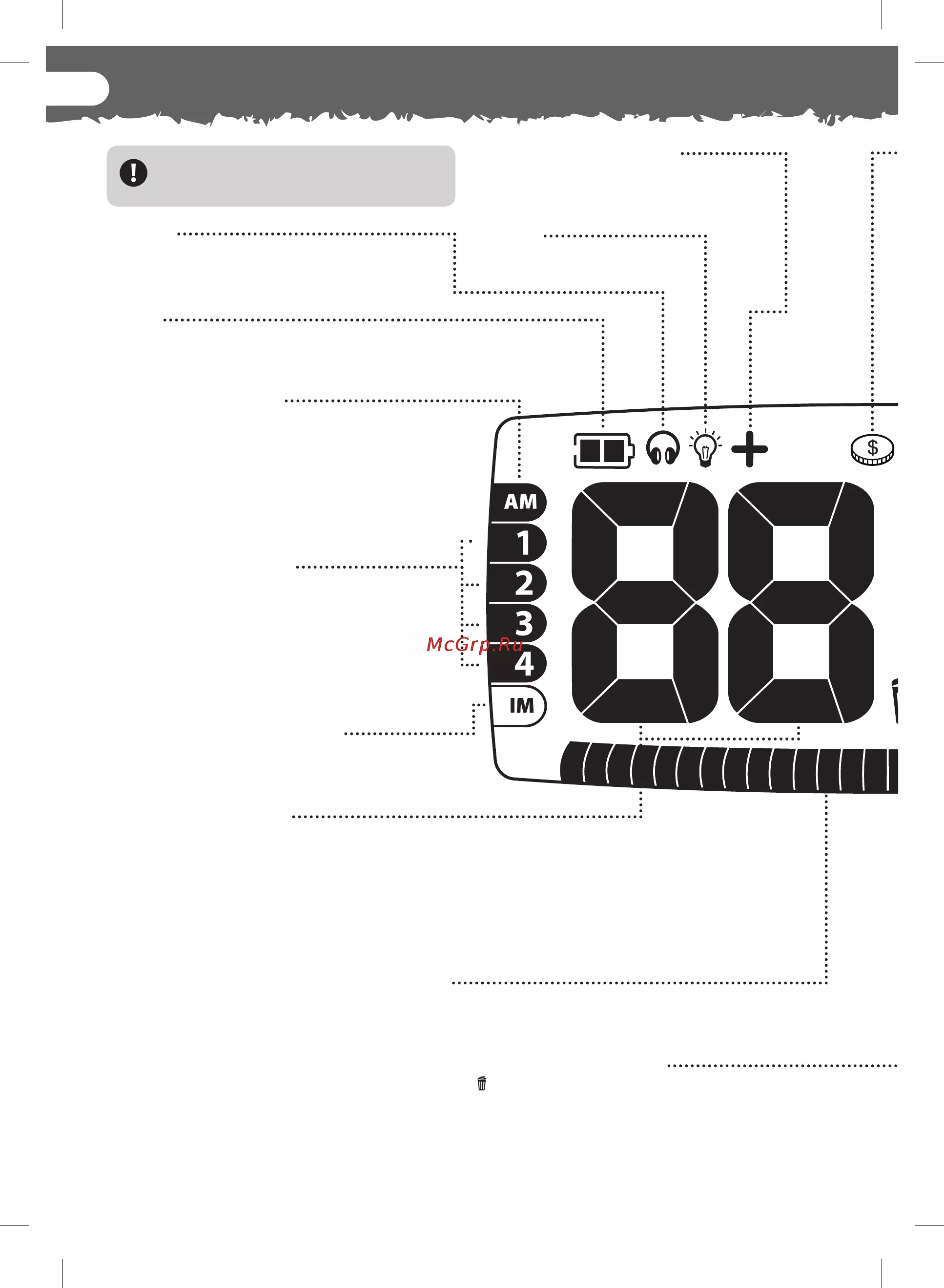 - Чем ближе настройки маски дискриминации железа к 20 тем больше сигналов от железного мусора будет отклонено но также могут отклоняться сигналы и от золотых самородков p.22