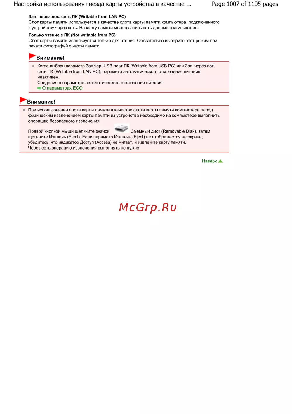 Canon Pixma MG6240 — настройка слота карты памяти для компьютеров и устройств [1007/1105]