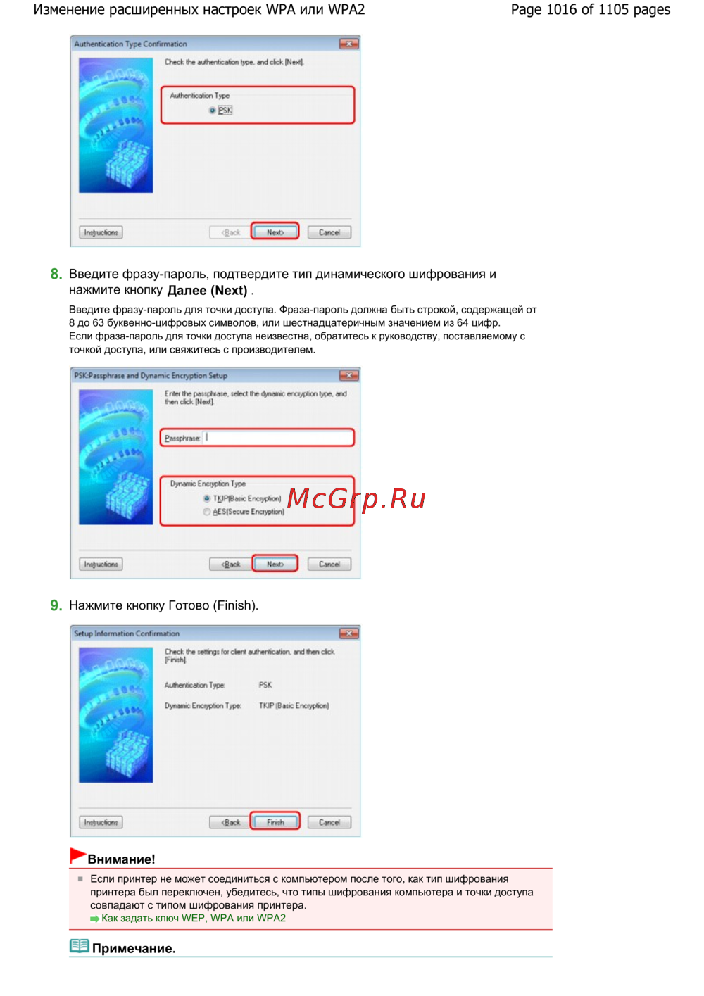 Canon Pixma MG6240 — настройка шифрования для точки доступа и принтера [1016/1105]