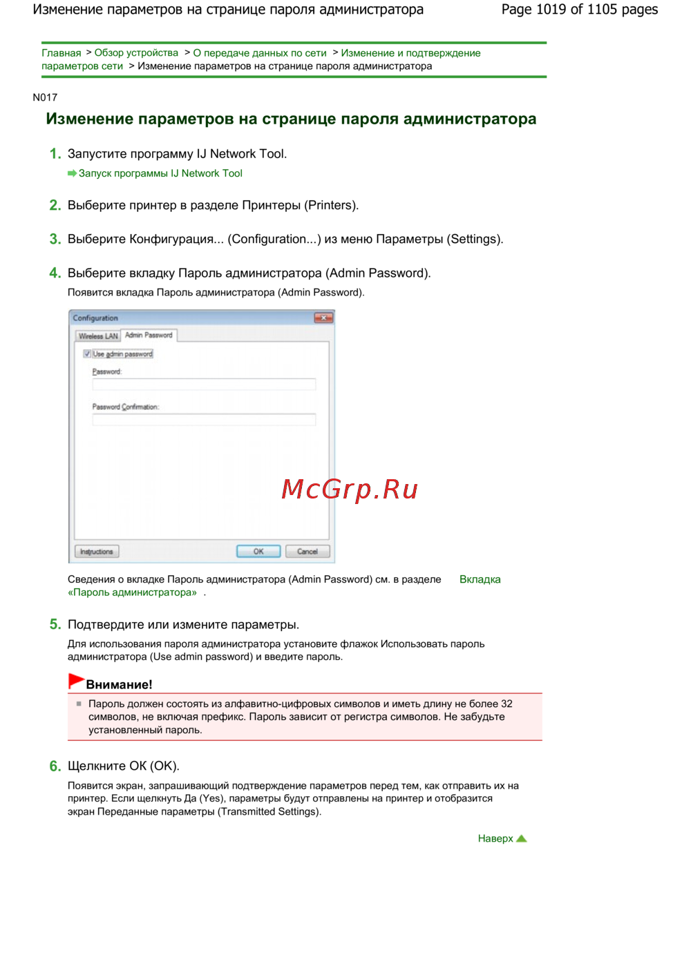 Canon Pixma MG6240 — изменение параметров сети через страницу администратора устройства [1019/1105]