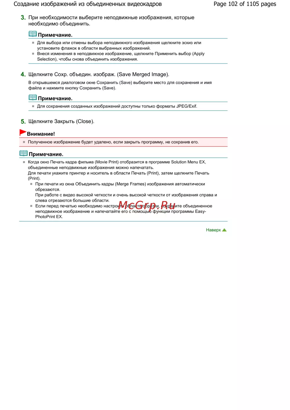 Canon Pixma MG6240 — как объединить видеокадры в неподвижные изображения [102/1105]