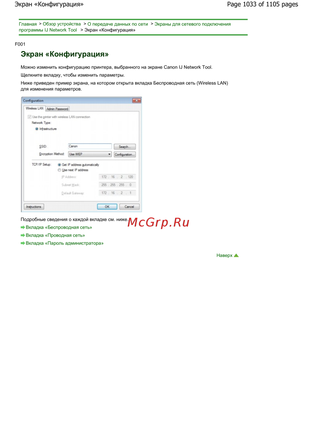 Canon Pixma MG6240 — обзор конфигурации сетевых устройств и их параметров [1033/1105]
