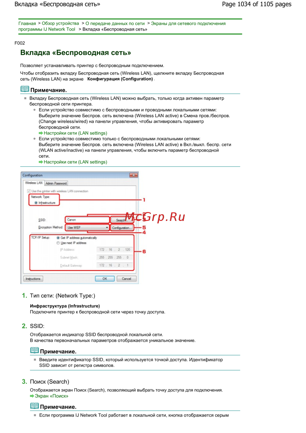 Canon Pixma MG6240 — настройка беспроводной сети для принтера: пошаговое руководство [1034/1105]