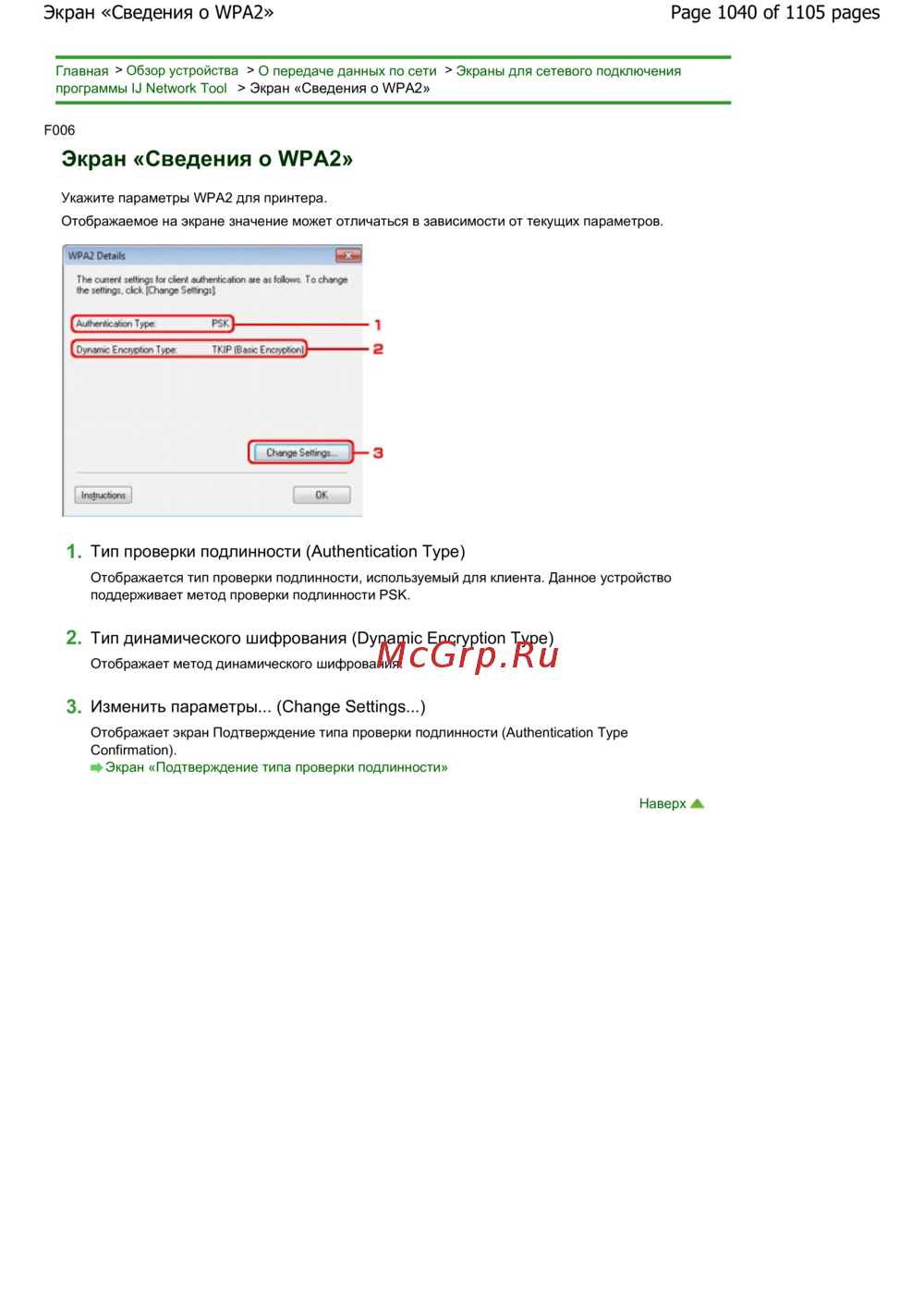 Canon Pixma MG6240 — обзор параметров WPA2 для сетевого подключения устройств [1040/1105]