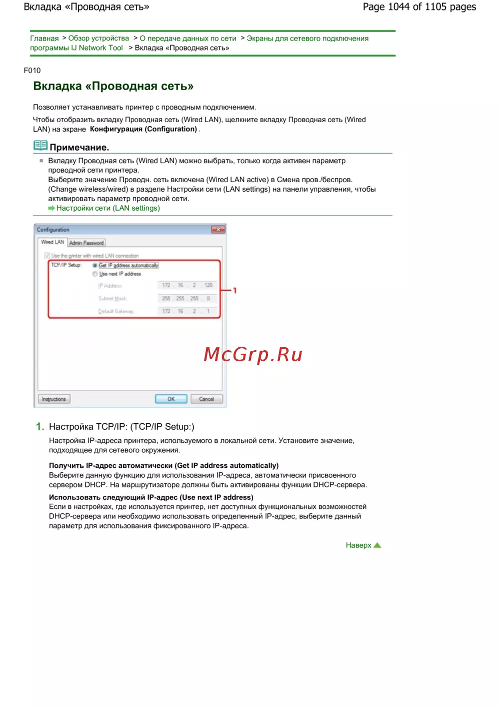 Canon Pixma MG6240 — настройка проводного подключения принтера через сеть [1044/1105]