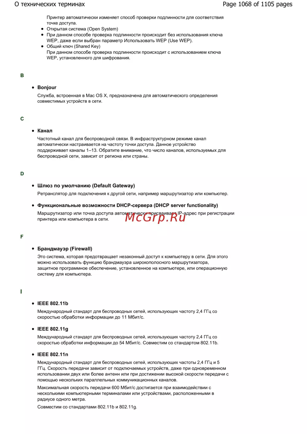 Canon Pixma MG6240 — понимание беспроводной аутентификации и стандартов сети [1068/1105]