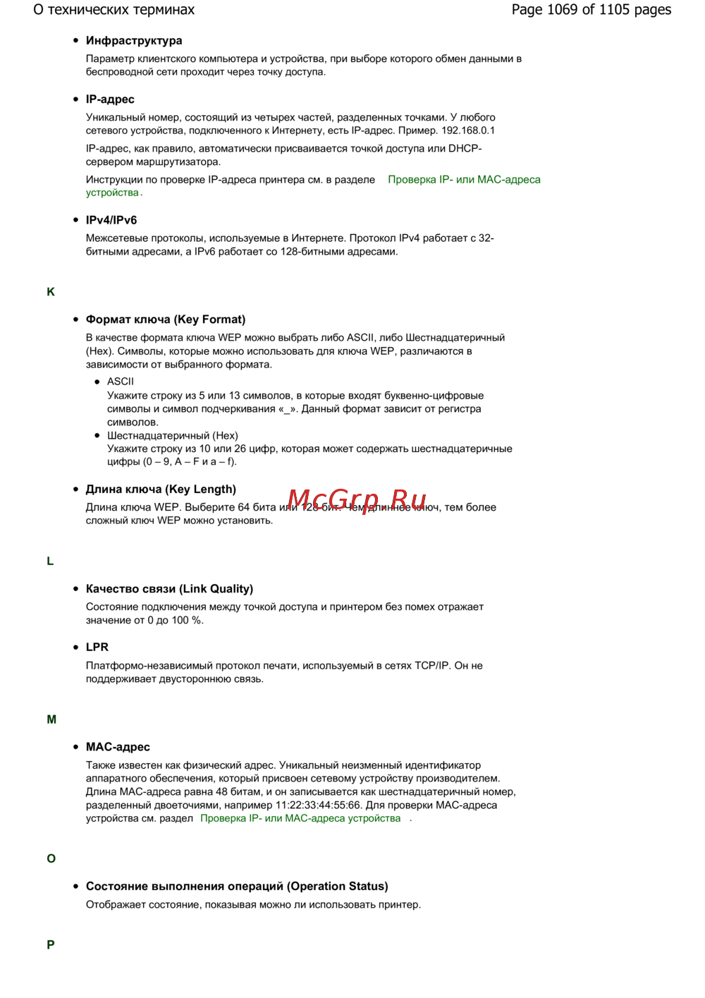 Canon Pixma MG6240 — технические термины сетей: IP-адрес, WEP, MAC-адрес и другие параметры [1069/1105]