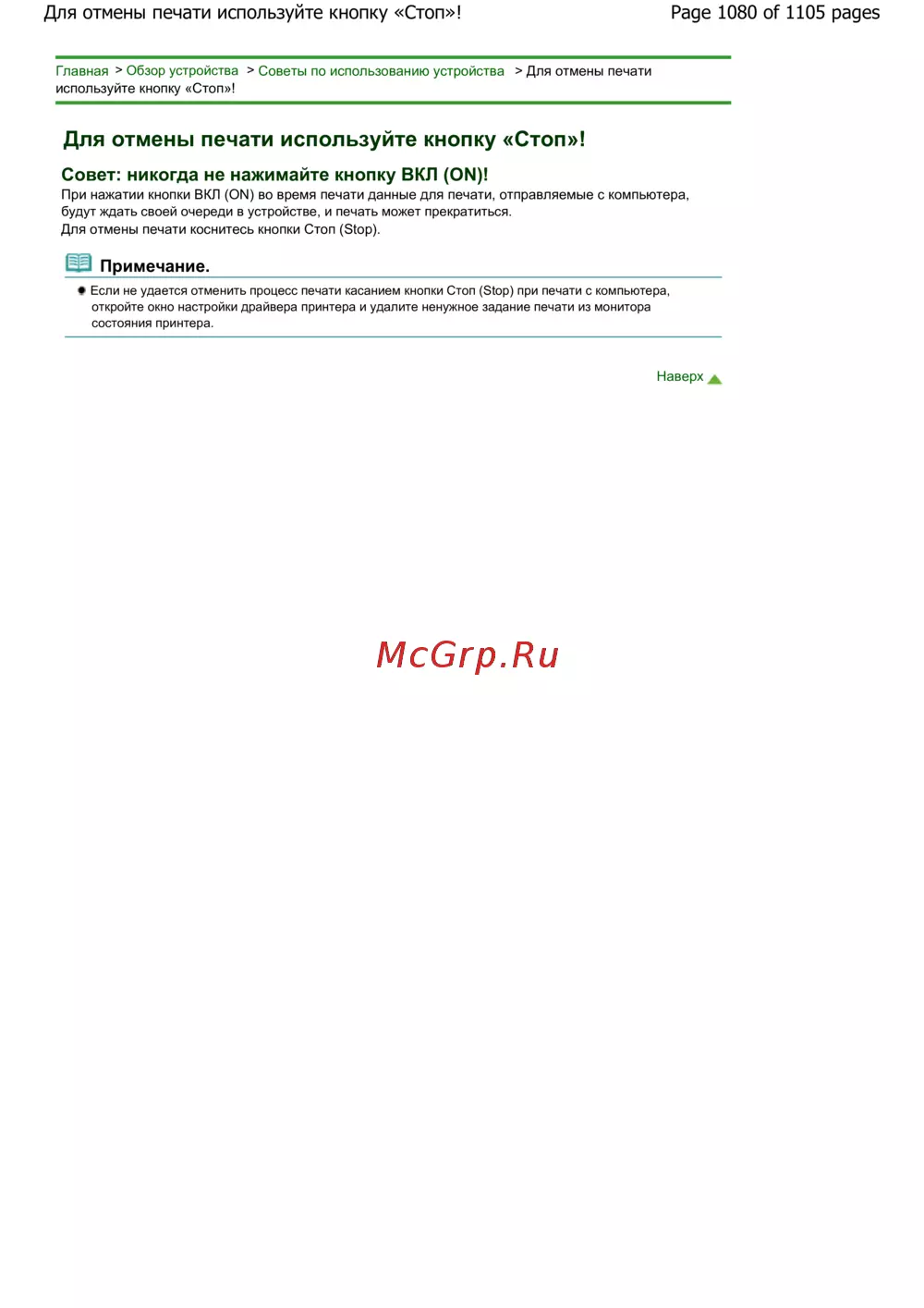 Canon Pixma MG6240 — советы по отмене печати и управлению устройством [1080/1105]