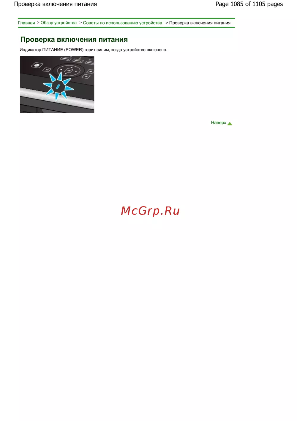 Советы по использованию устройства > Проверка включения питания