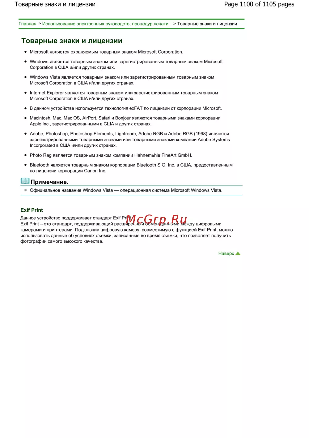 Canon Pixma MG6240 — информация о товарных знаках и лицензиях на технологии печати [1100/1105]