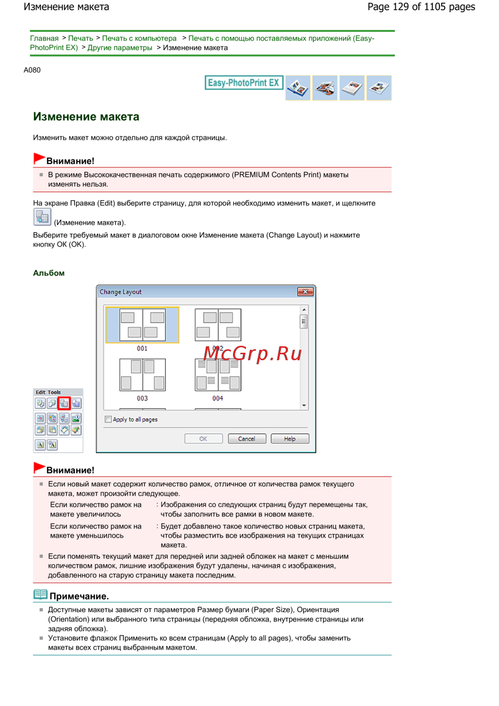 Canon Pixma MG6240 — изменение макета для печати с компьютера: пошаговое руководство [129/1105]