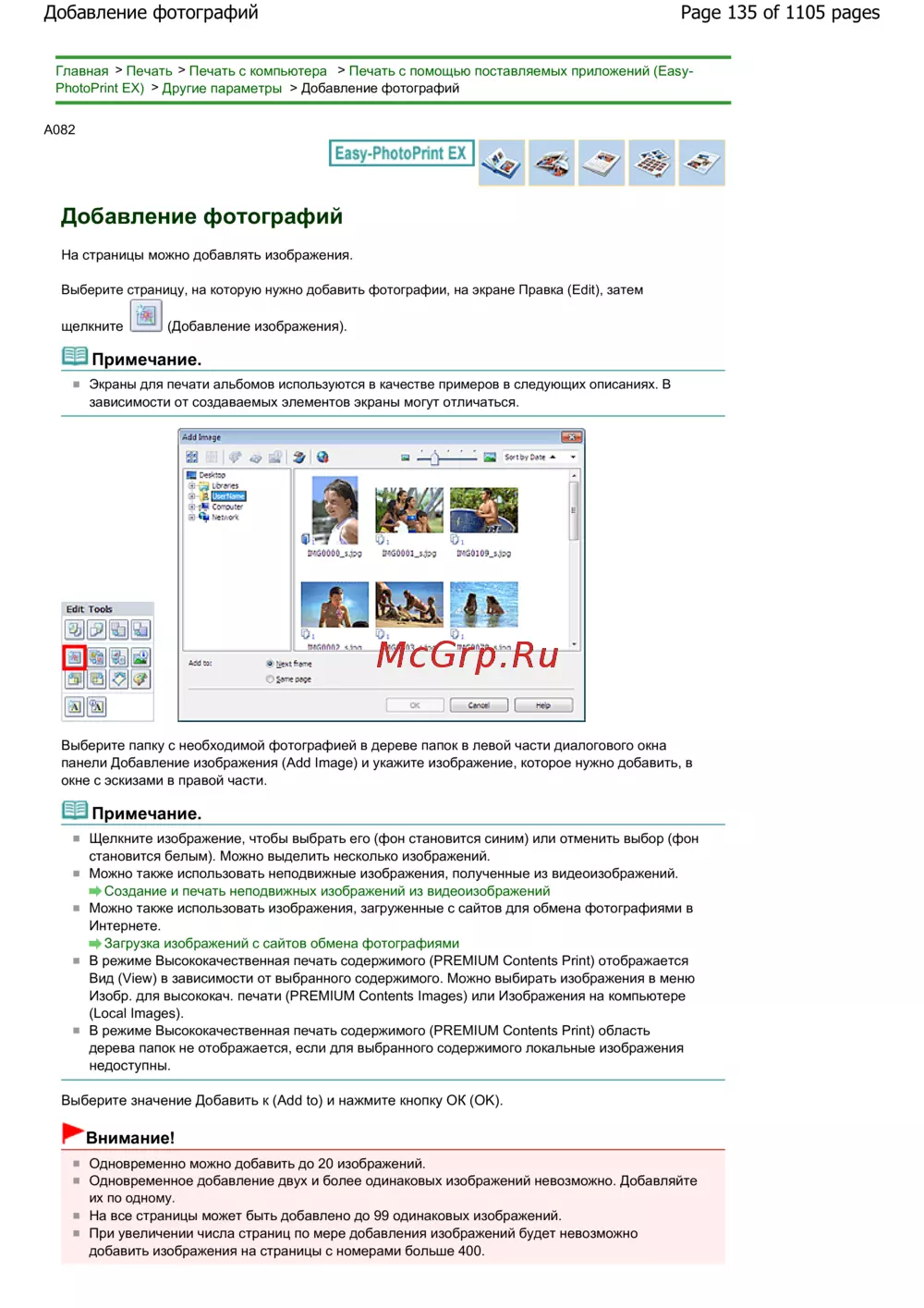 Canon Pixma MG6240 — как добавлять фотографии для печати с компьютера [135/1105]
