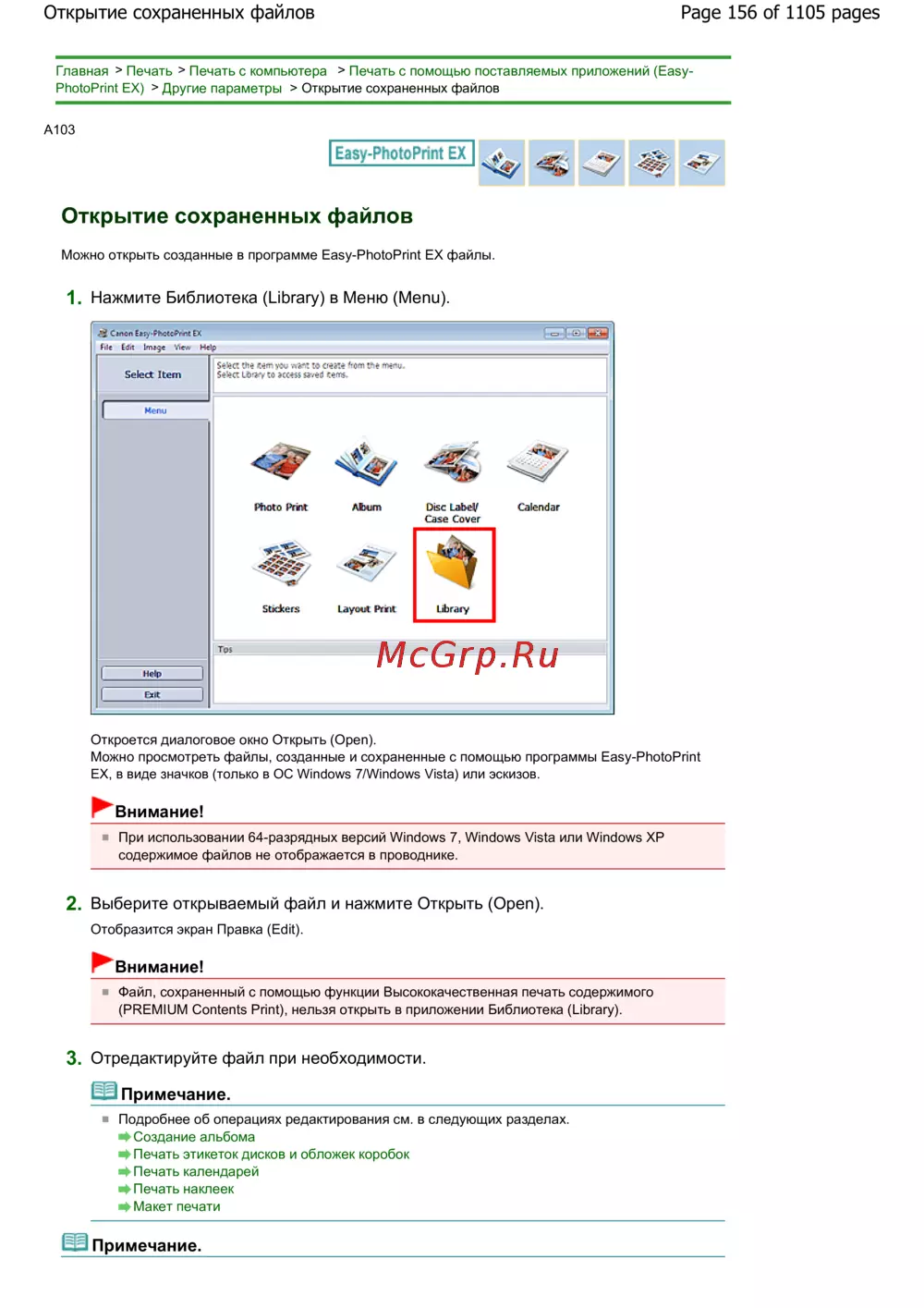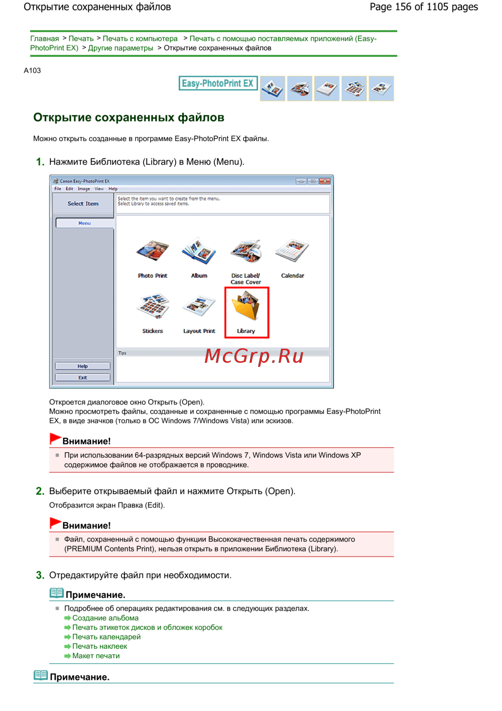 Page 156 of 1105 pagesОткрытие сохраненных файлов