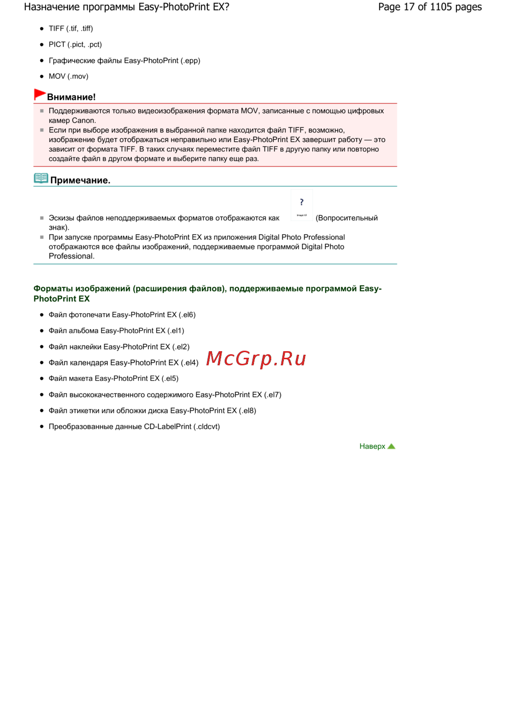 Canon Pixma MG6240 — поддерживаемые форматы изображений для печати и редактирования [17/1105]