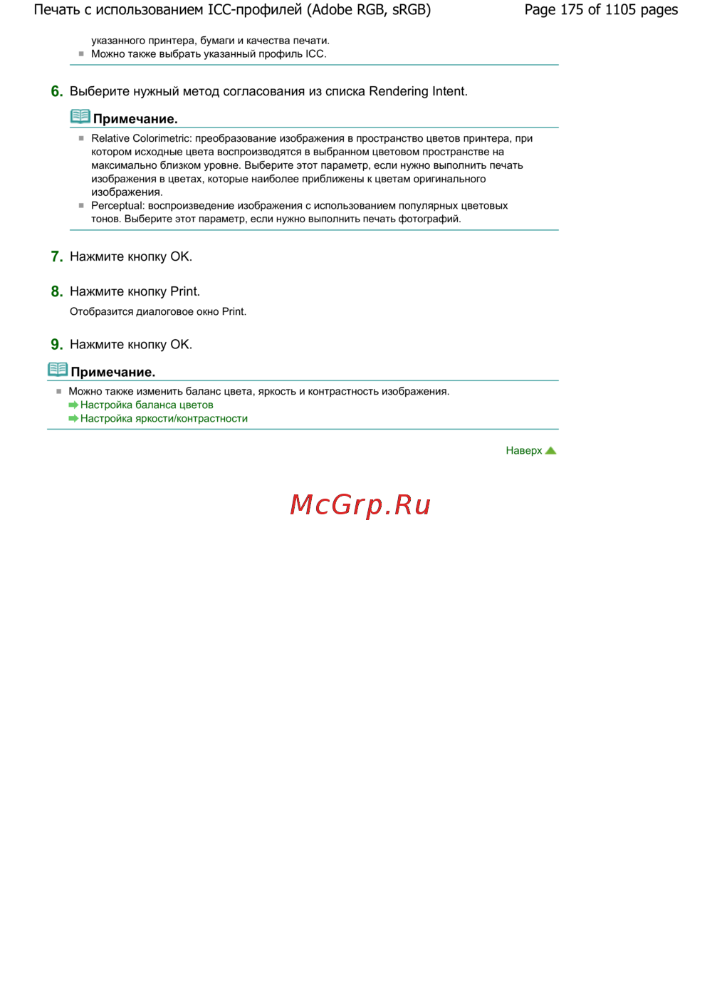 Page 175 of 1105 pagesПечать с использованием ICC-профилей (Adobe RGB, sRGB)