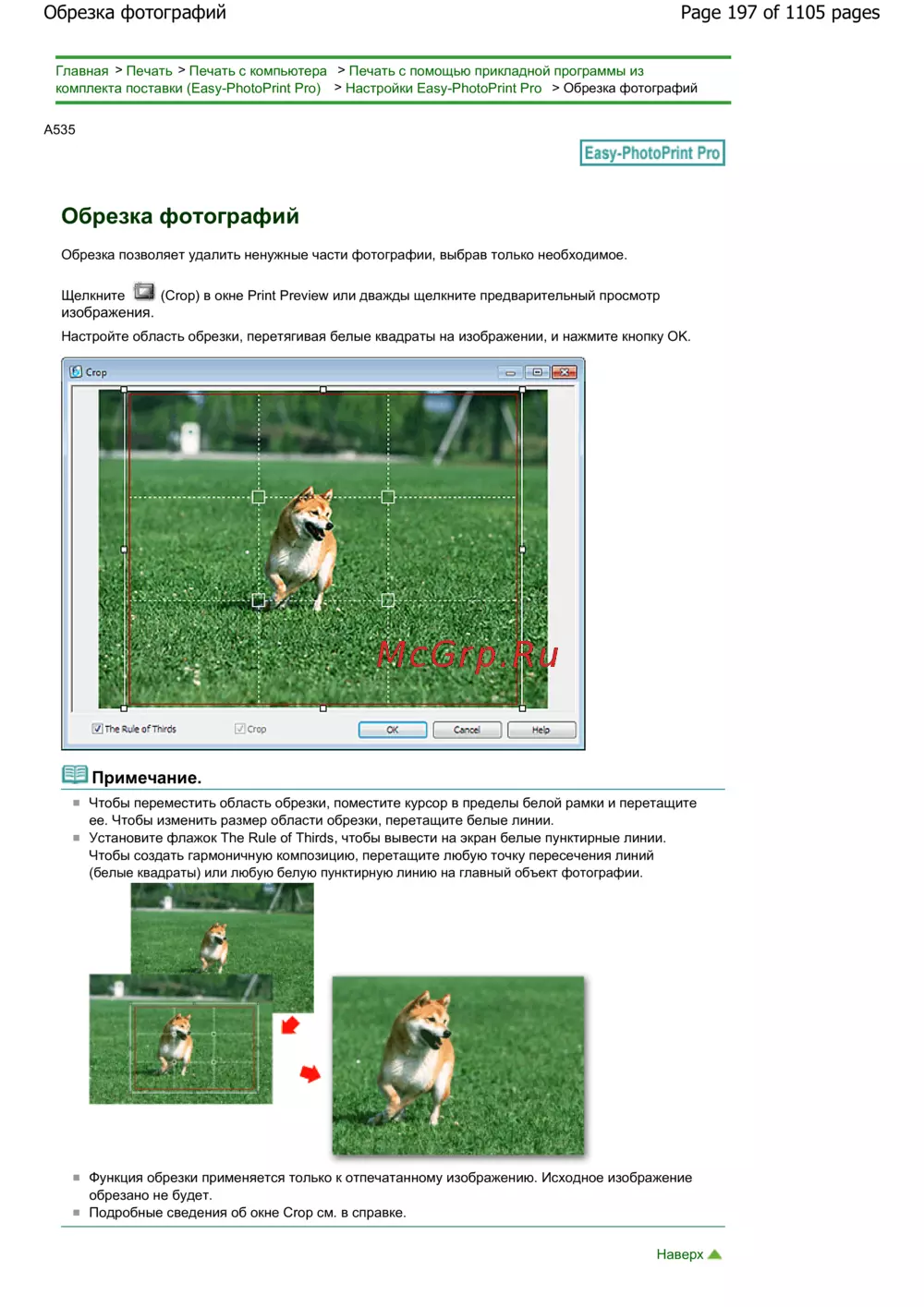 Canon Pixma MG6240 — настройки обрезки фотографий для печати с компьютера [197/1105]