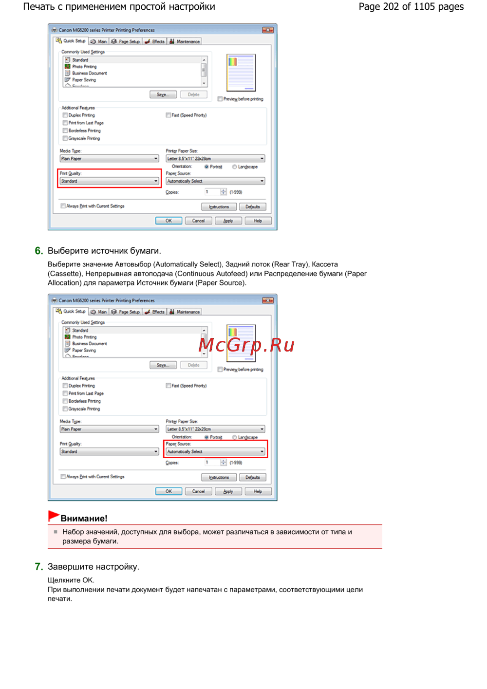 Canon Pixma MG6240 — настройка источника бумаги для печати: пошаговое руководство [202/1105]