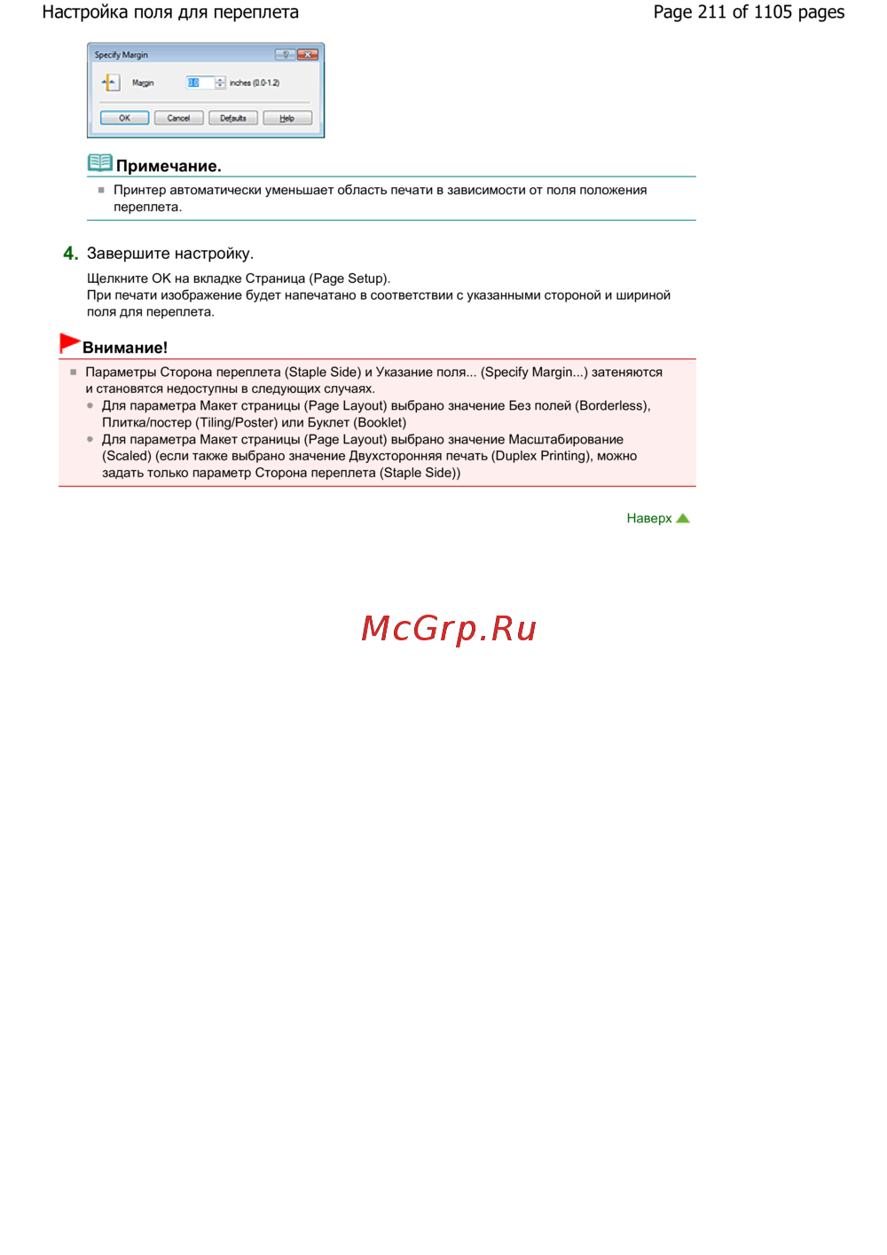 Canon Pixma MG6240 — настройка полей для переплета при печати [211/1105]