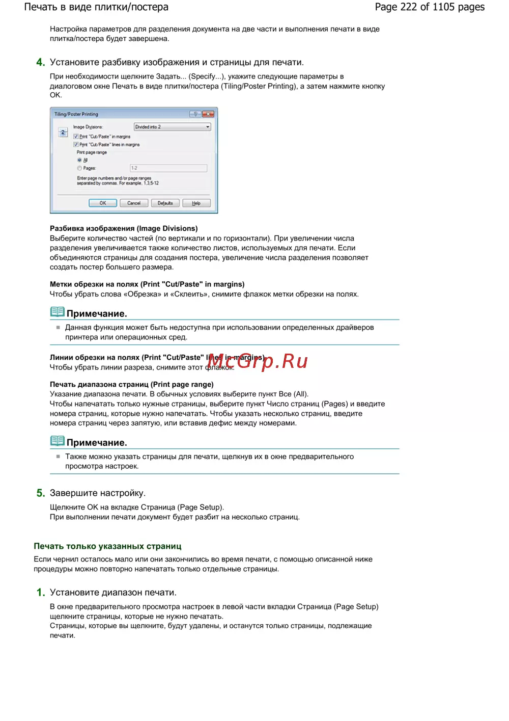 Canon Pixma MG6240 — настройка печати в виде плитки/постера: инструкция по разделению документа [222/1105]