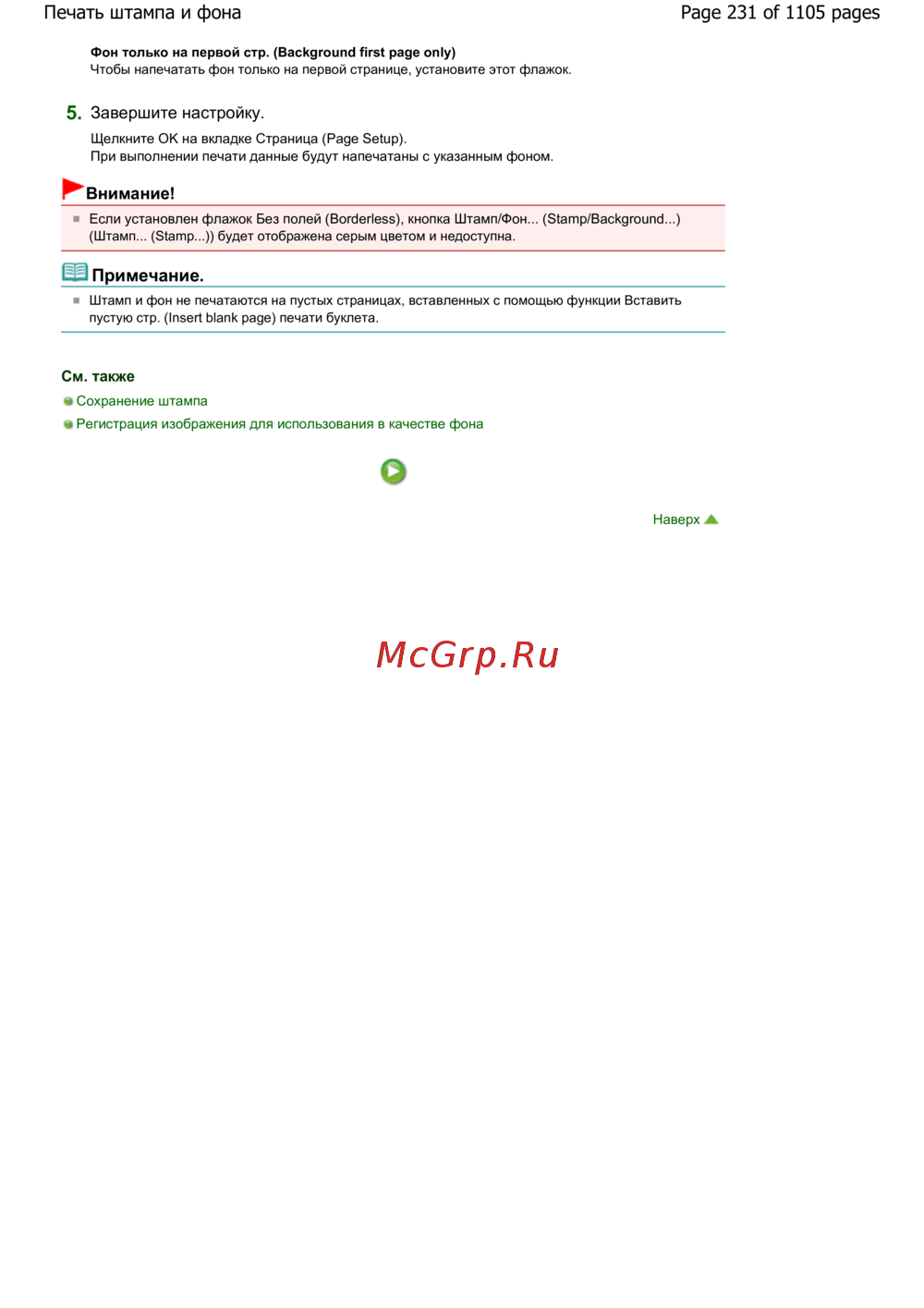 Canon Pixma MG6240 — как настроить фон для печати только на первой странице [231/1105]