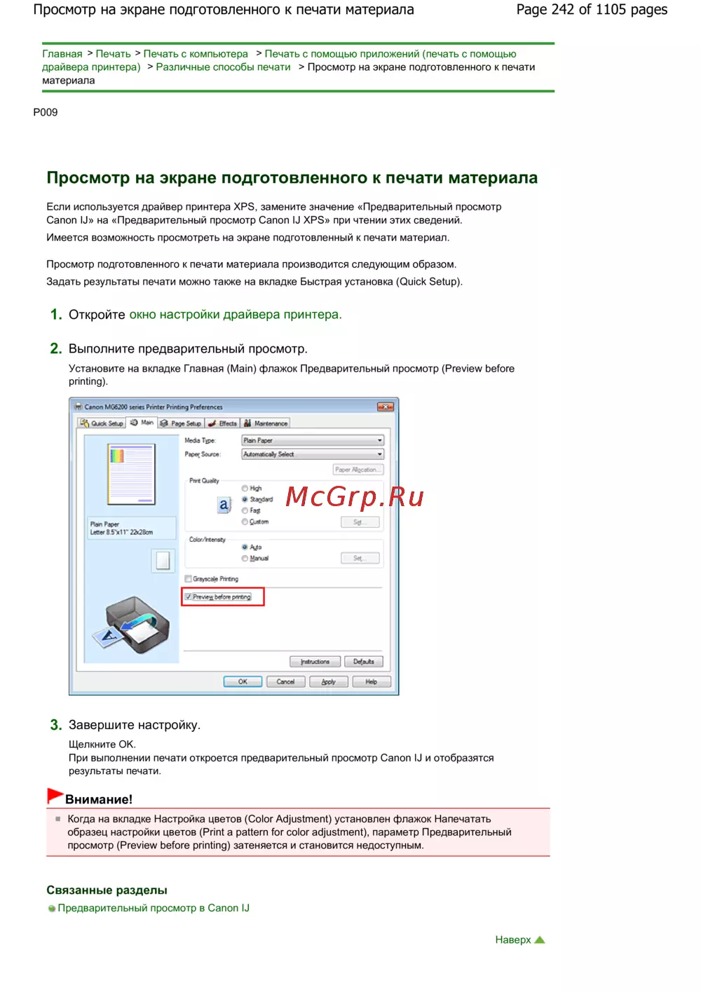 Canon Pixma MG6240 — различные способы предварительного просмотра перед печатью [242/1105]