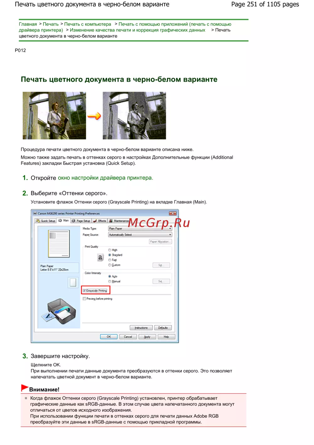 Canon Pixma MG6240 — как напечатать цветной документ в черно-белом варианте [251/1105]