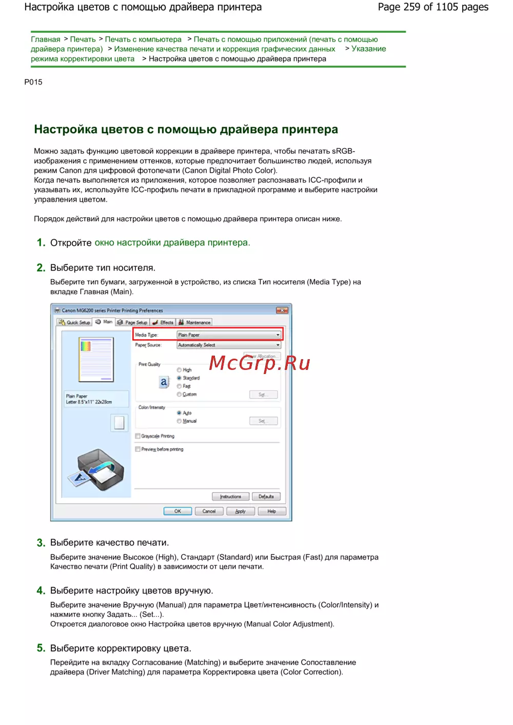Canon Pixma MG6240 — настройка цветов в драйвере принтера для качественной печати [259/1105]