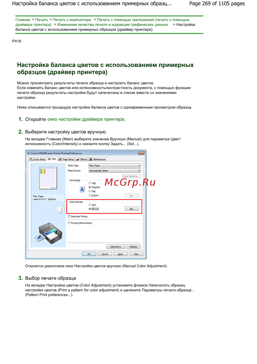 Canon Pixma MG6240 — как настроить баланс цветов при печати с компьютера [269/1105]