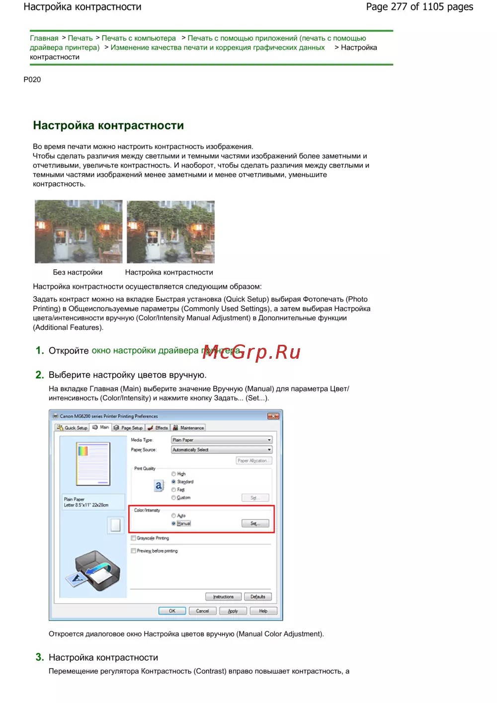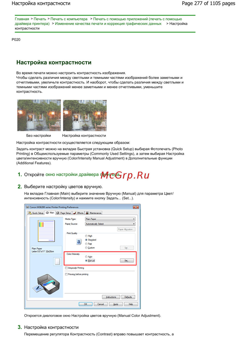Canon Pixma MG6240 — настройка контрастности при печати с компьютера [277/1105]