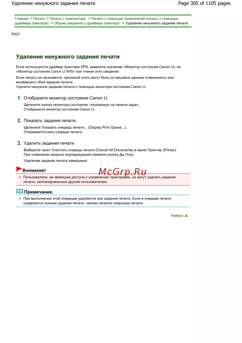 Page 305 of 1105 pagesУдаление ненужного задания печати