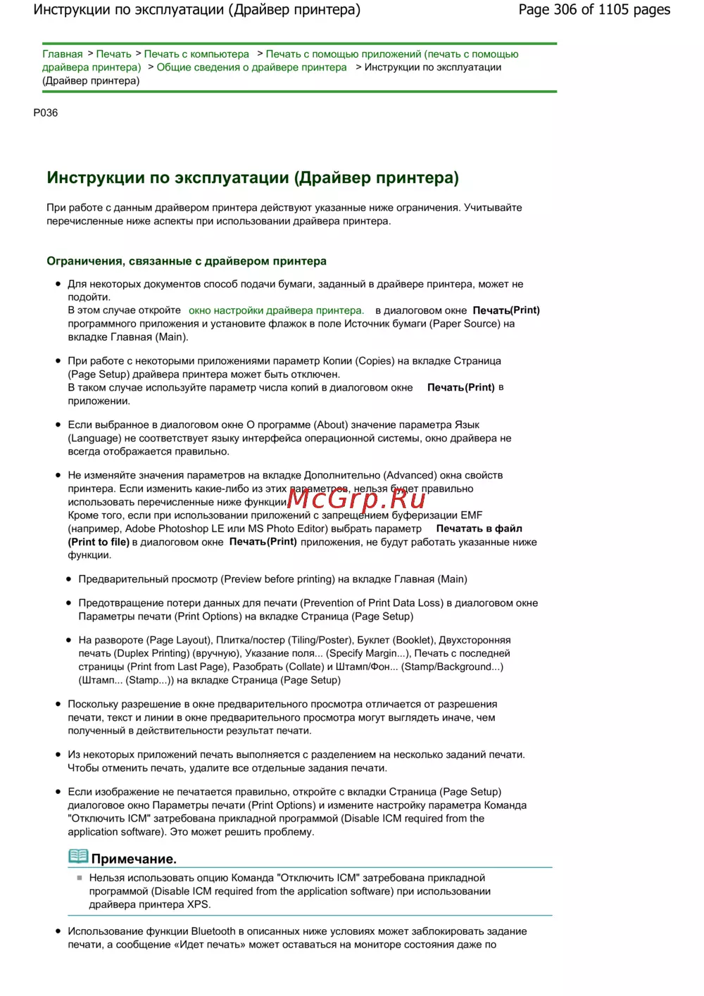 Page 306 of 1105 pagesИнструкции по эксплуатации (Драйвер принтера)