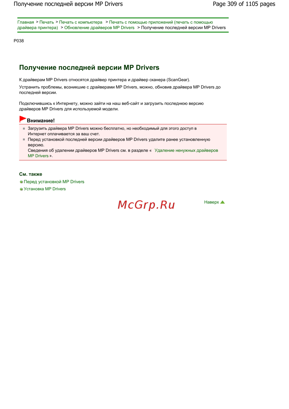 Page 309 of 1105 pagesПолучение последней версии MP Drivers