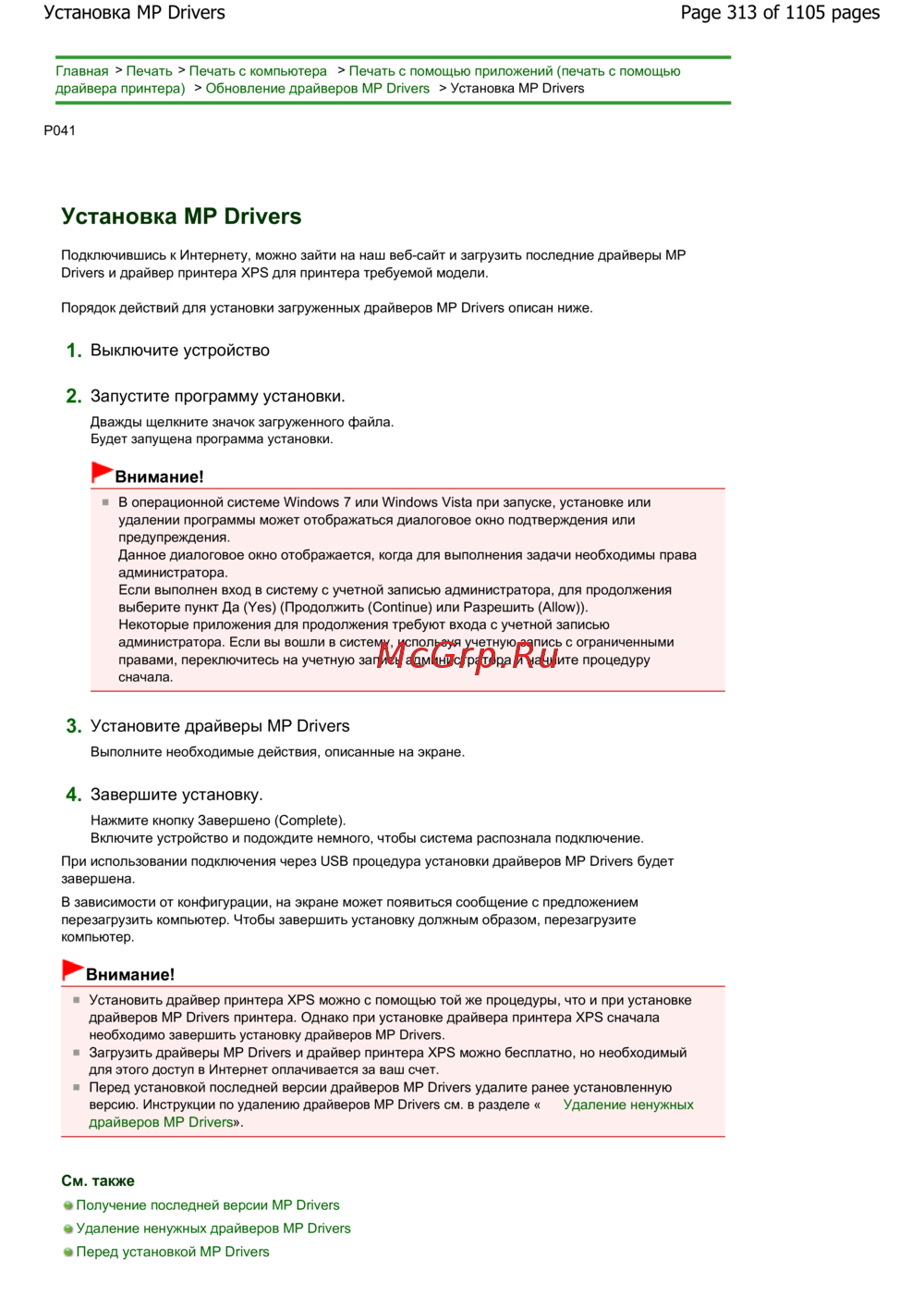 версию. Инструкции по удалению драйверов MP Drivers см. в разделе «