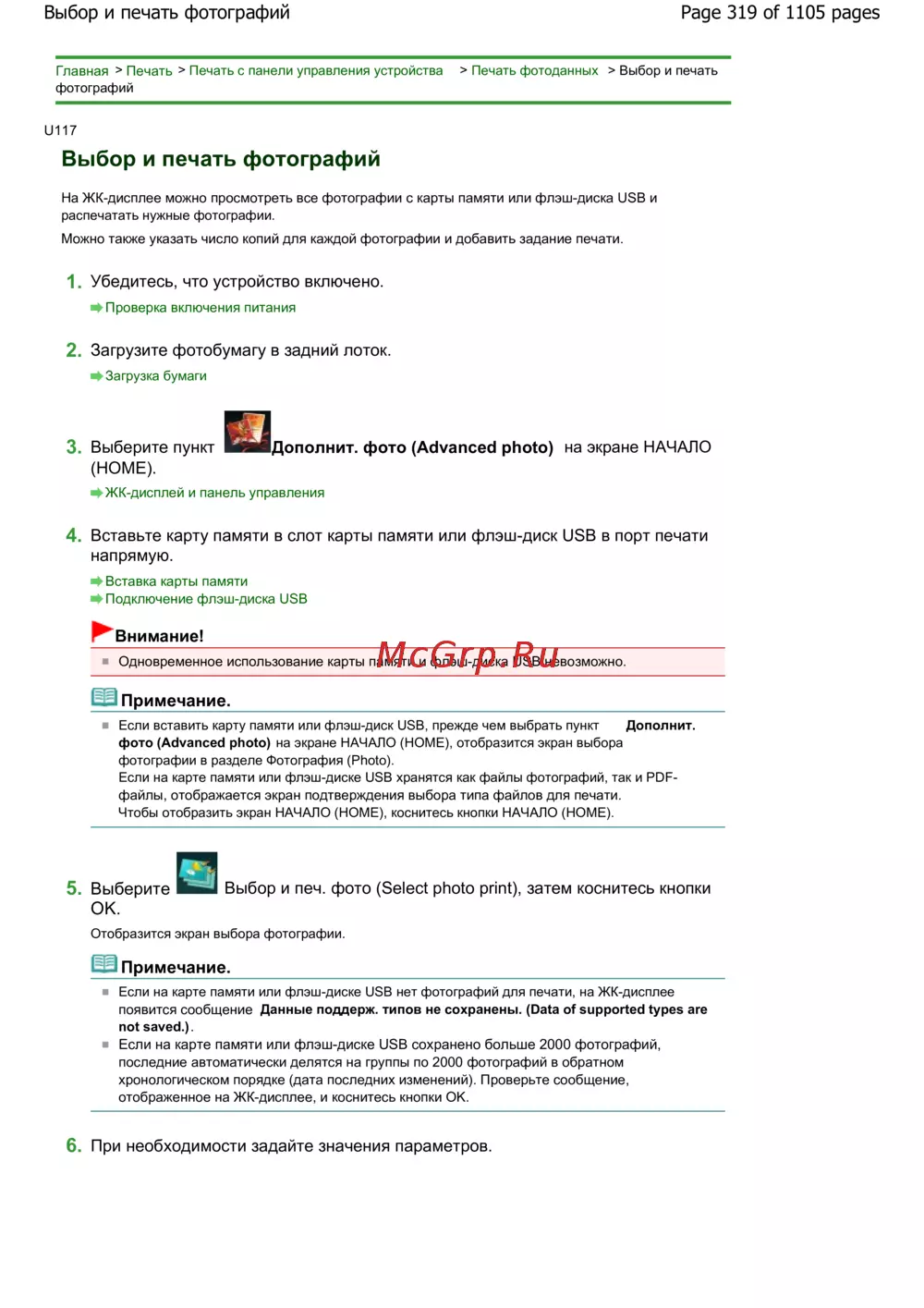 - Page 6 of 1105 pages печать фотографий сохраненных на карту памяти или флэш дис p.6