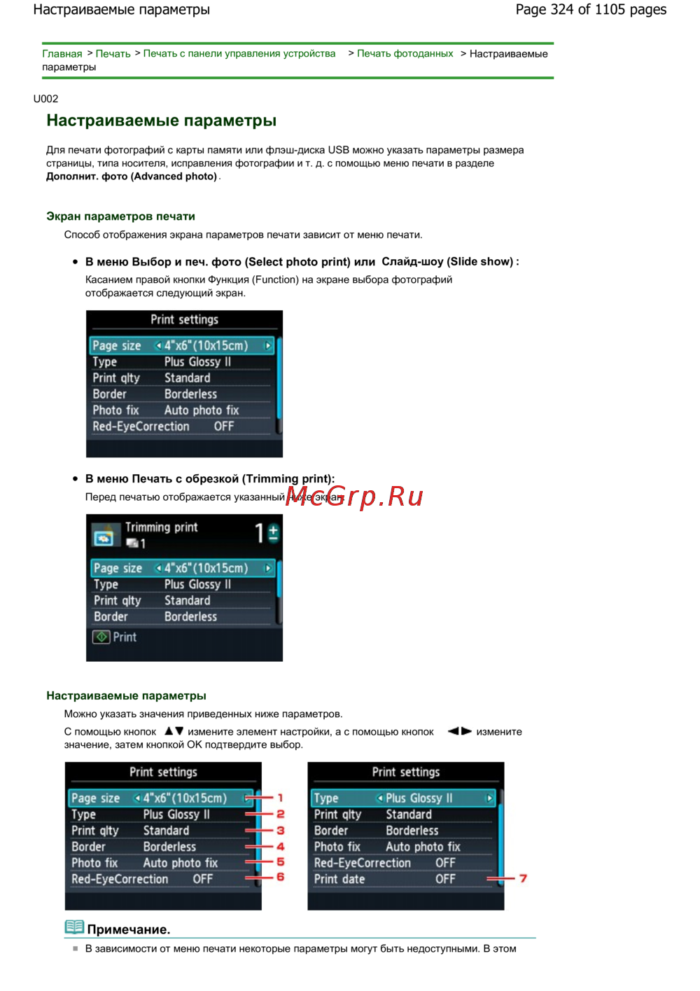 Canon Pixma MG6240 — настраиваемые параметры печати фотографий с USB и карты памяти [324/1105]