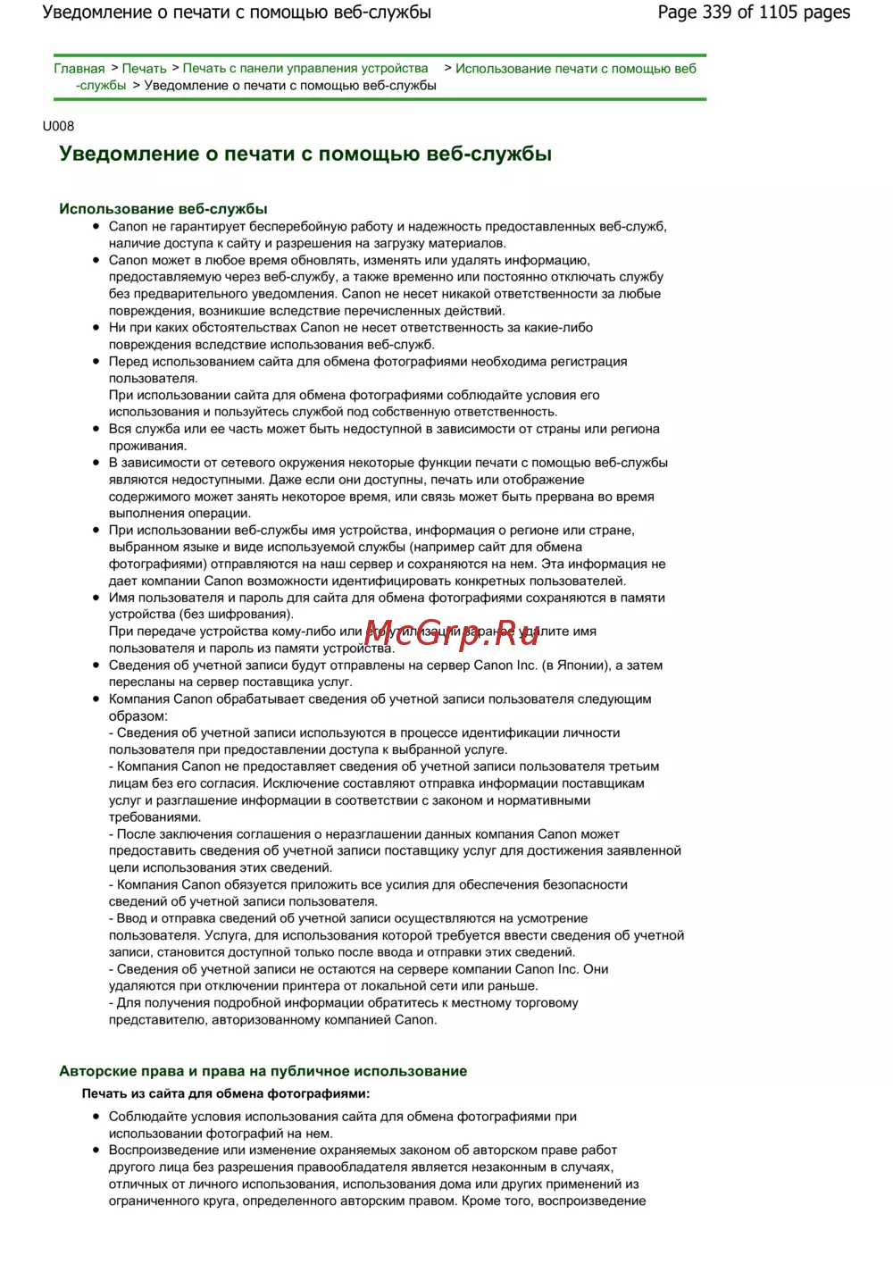 Canon Pixma MG6240 — использование веб-службы печати: важные аспекты и рекомендации [339/1105]