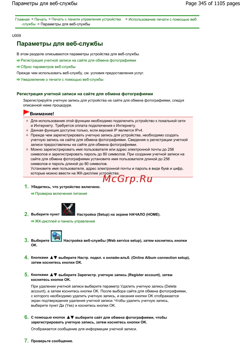 Canon Pixma MG6240 — параметры веб-службы для печати с панели управления устройства [345/1105]