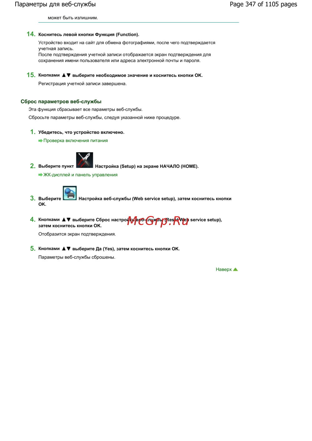 Canon Pixma MG6240 — как зарегистрировать учетную запись и сбросить параметры веб-службы [347/1105]