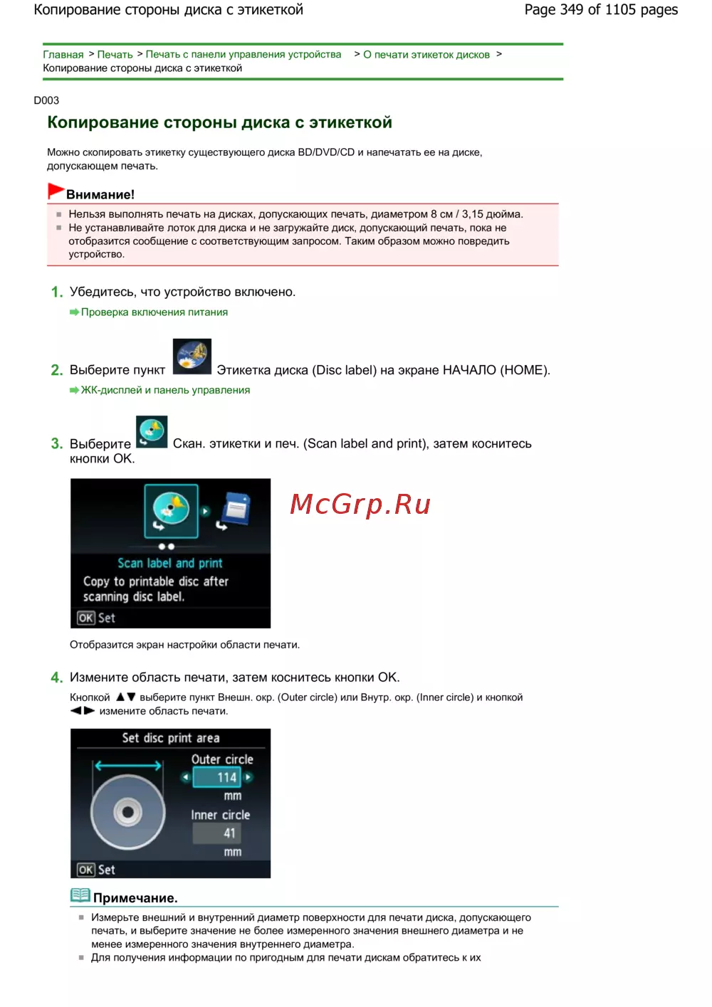 Page 349 of 1105 pagesКопирование стороны диска с этикеткой