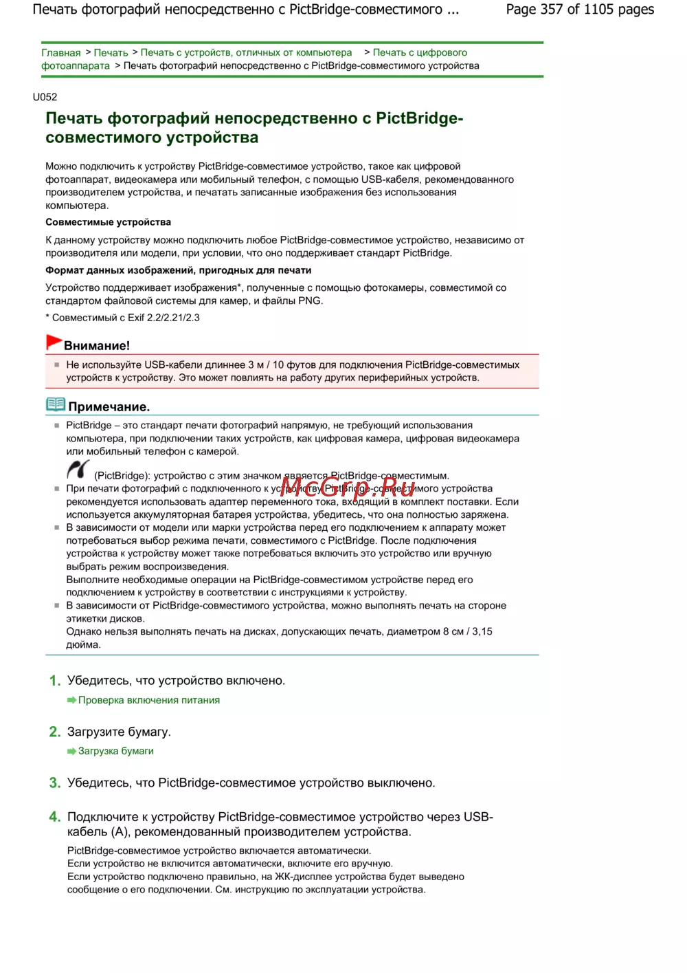Canon Pixma MG6240 — печать фотографий с PictBridge-совместимых устройств без компьютера [357/1105]