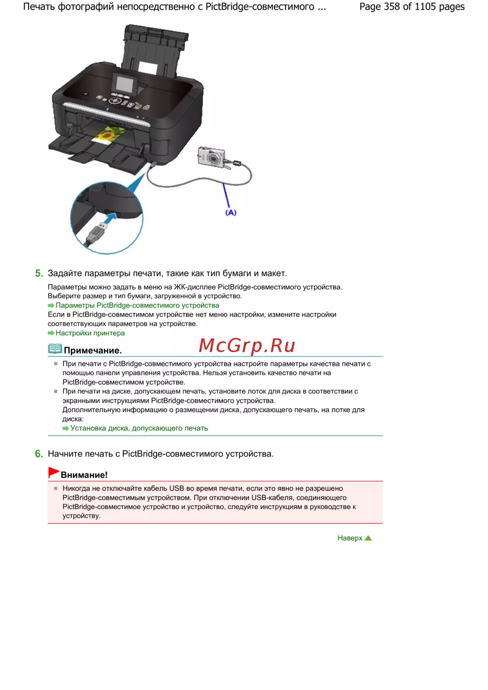 Canon Pixma MG6240 — как настроить параметры печати с PictBridge-совместимого устройства [358/1105]