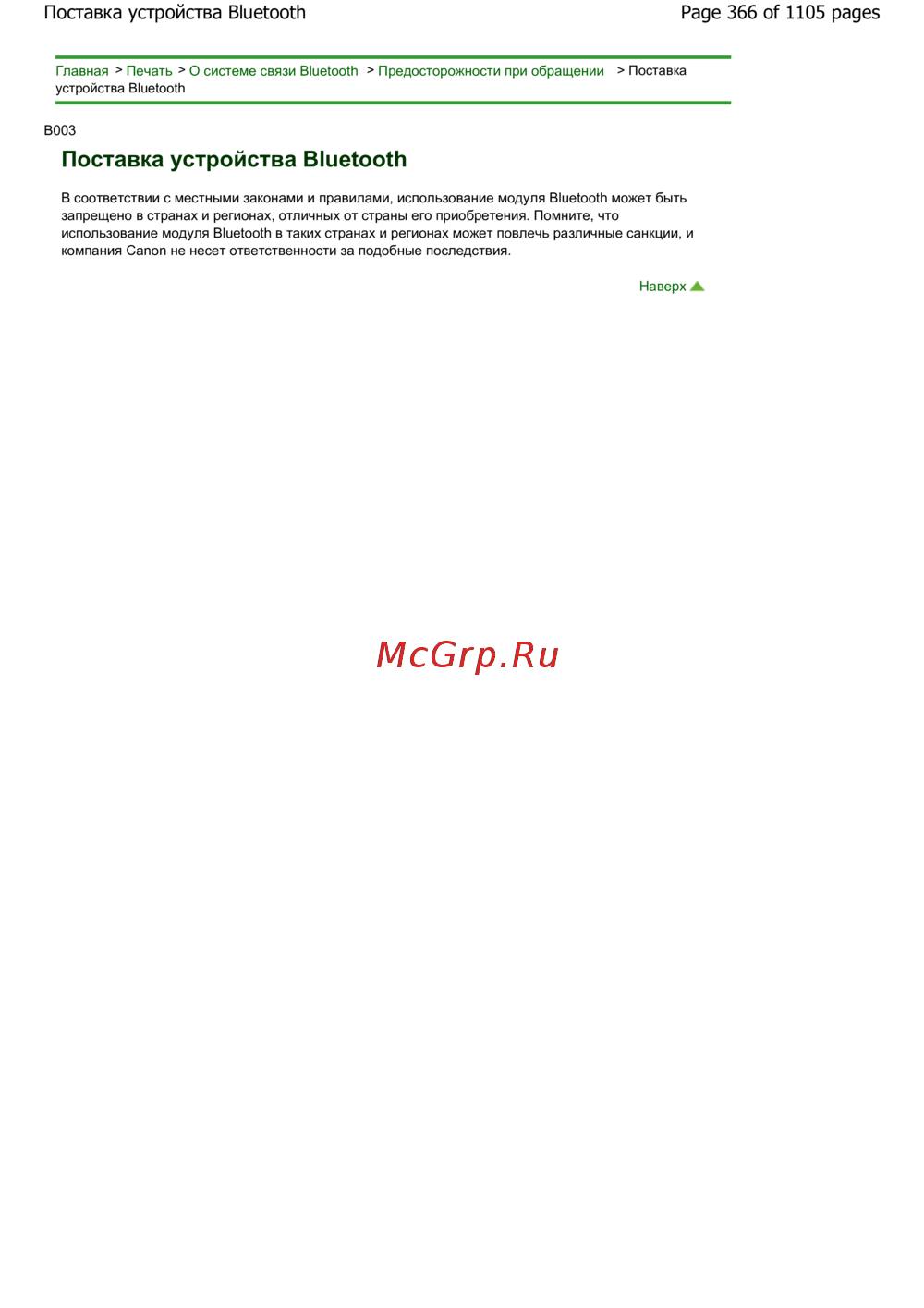 Canon Pixma MG6240 — предосторожности при использовании Bluetooth устройств [366/1105]